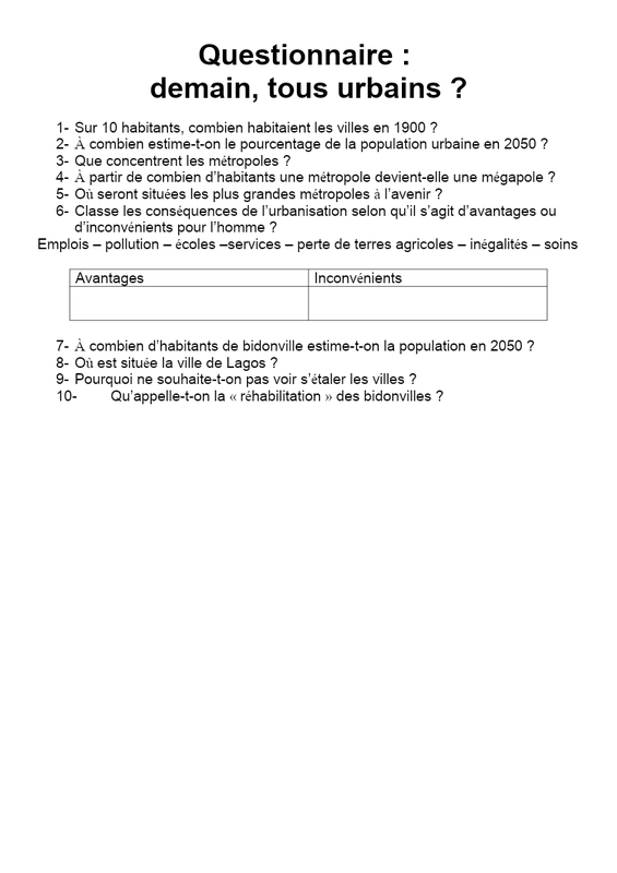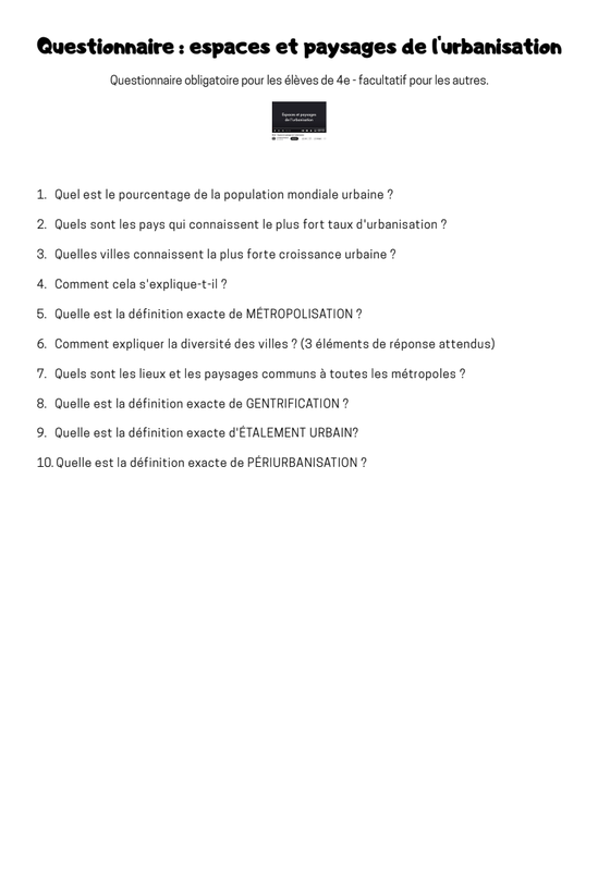 Vidéo à regarder : questionnaire à compléter et à rendre.