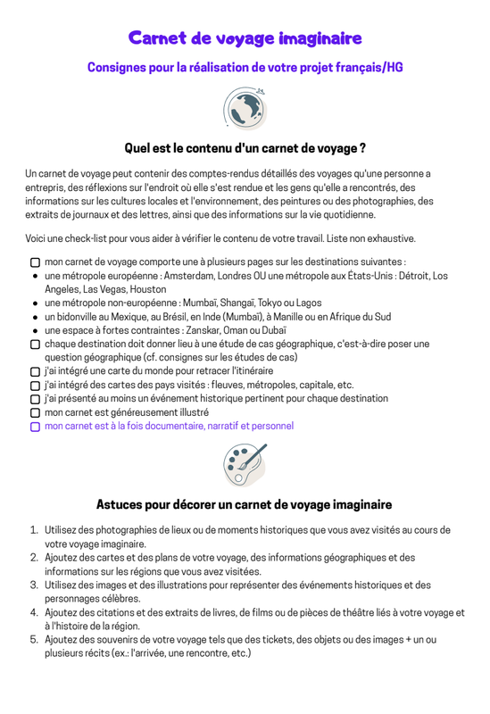 Pour réaliser ton carnet de voyage, parcours l'ensemble des documents concernant les destinations que tu auras retenues.