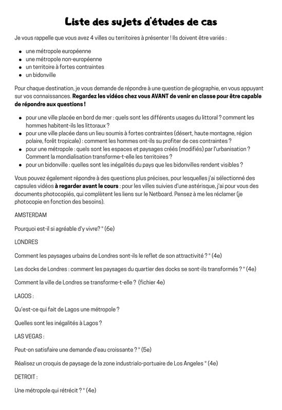 Liste Des Sujets D'ÉTudes De Cas, Par Villes