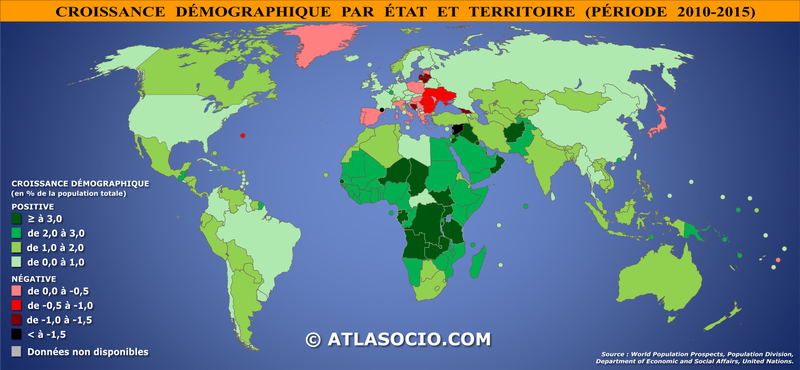 Carte de la croissance démographique mondiale 2010-2015