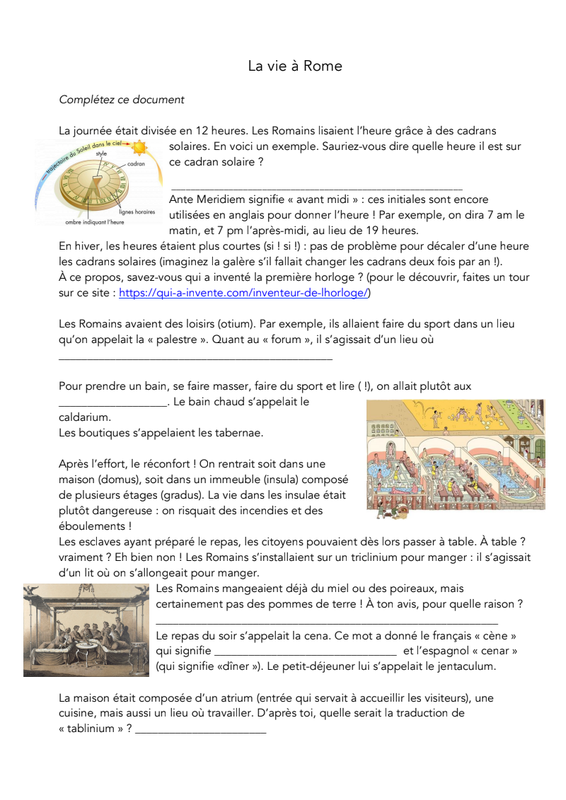 Vous avez à rédiger pour le journal du collège, une série d'articles sur la vie à Rome dans l'Antiquité.